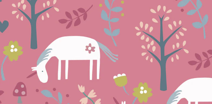 Tiptoe with magical unicorns through an enchanted garden. Discover a dreamy ditsy world. Inspired by treasured tapestries – sprinkled with storytelling magic.