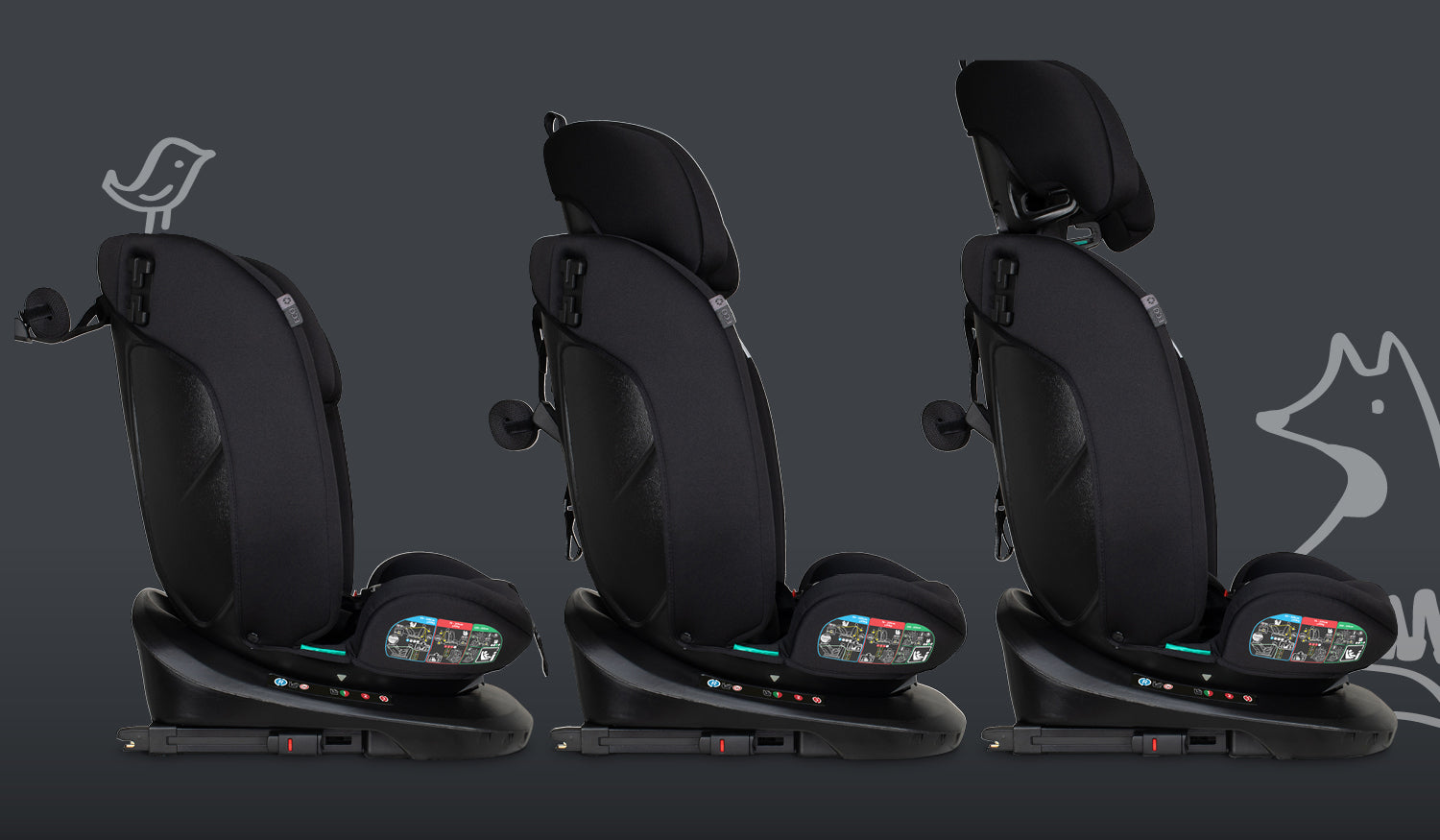 40cm-150cm all-stage Extended Rear Facing (ERF) ISOFIX rotating car seat with extra side-impact protection.